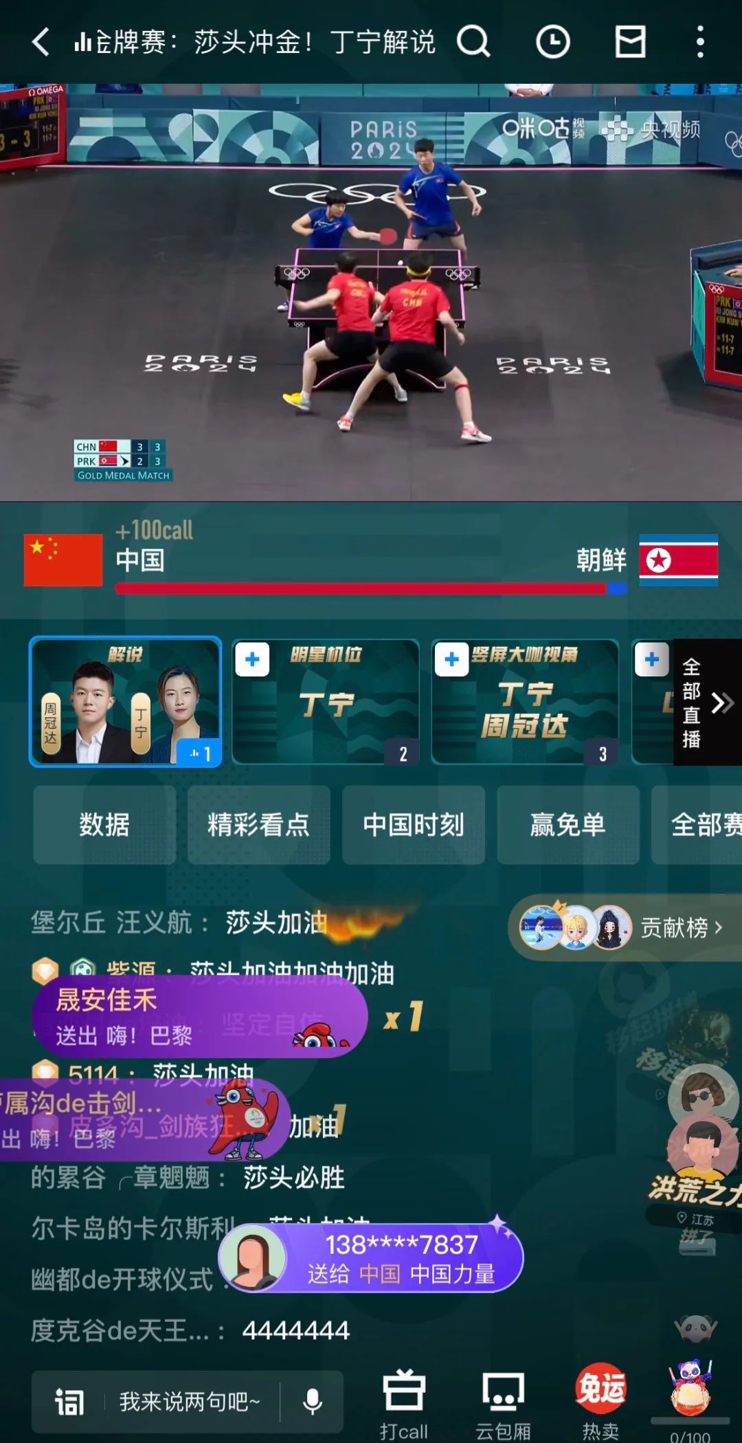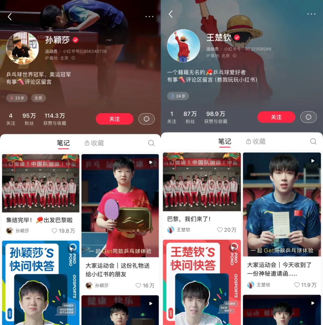 成本投入次之的应该是小红书, 虽然没有转播权,但也推出了直播节目以及运动员入驻合作等。人气运动员孙颖莎和王楚钦于7月8日入驻小红书,一个月不到的时间,两人粉丝均已近百万。