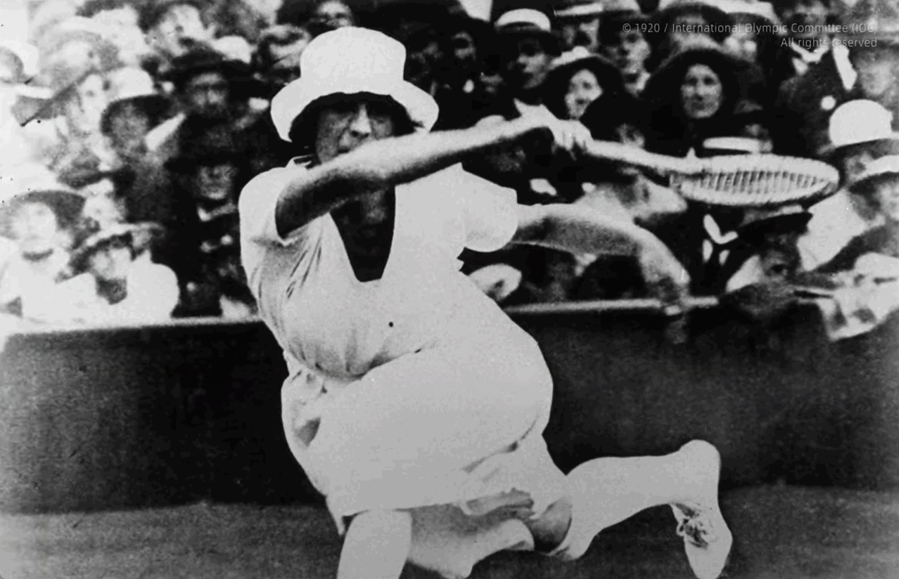苏珊·朗格伦(Suzanne Lenglen),法国传奇网球运动员和奥运冠军。身穿皮草现身赛场的她,是许多女性眼中的时尚Icon。球场上挥拍凌厉的她,大胆地脱下重约18KG的衣服,身穿约0.18KG的短袖白裙,让网球因女性而改变。