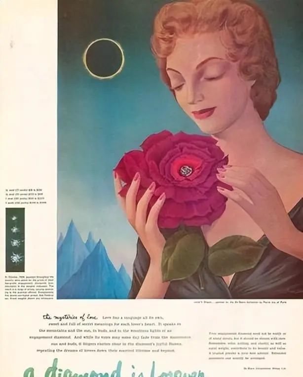 这句堪称史上最成功的广告语,将钻石透明、坚硬的特质与爱情绑定在一起,让钻石成了真爱的象征,深入人心。