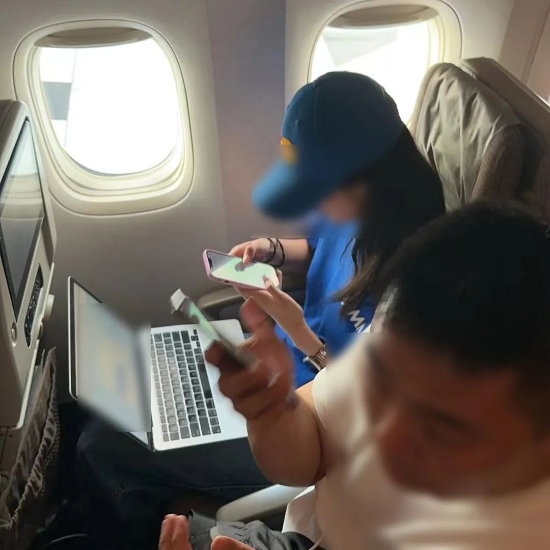 飞机因天气原因备降,火速掏出电脑办公的打工人/图源:@疯子,已获授权