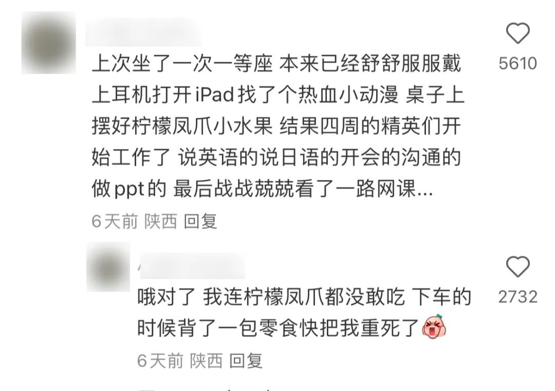 从配置到氛围,京沪高铁上早已工作氛围拉满,以至于初次乘坐的乘客有时难免局促:这给我干哪来了?