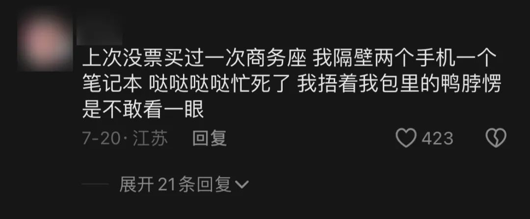 有人发现隔壁拿出两部手机一台笔记本,此时看一眼包里的鸭脖都觉得“不合时宜”;