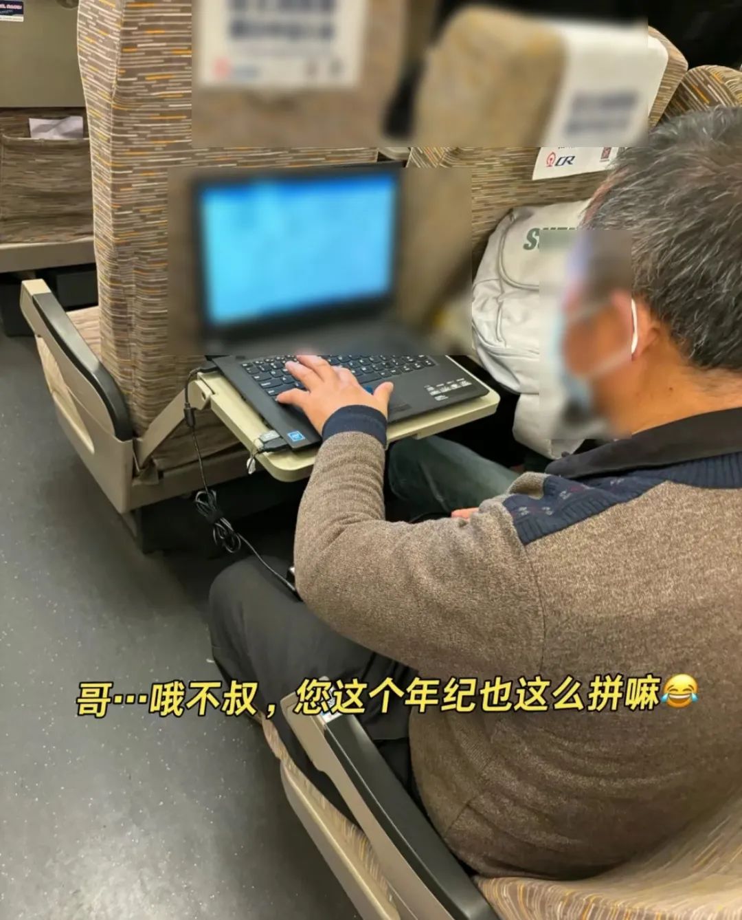 此情此景,如果不是看到窗外的风景、车上的座位,恍惚以为是在哪家企业工位。