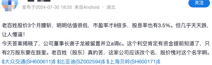 甚至有股民公开表示:“老百姓(股东)真的苦,这家公司应该改个名,股价愧对这个名字啊。”