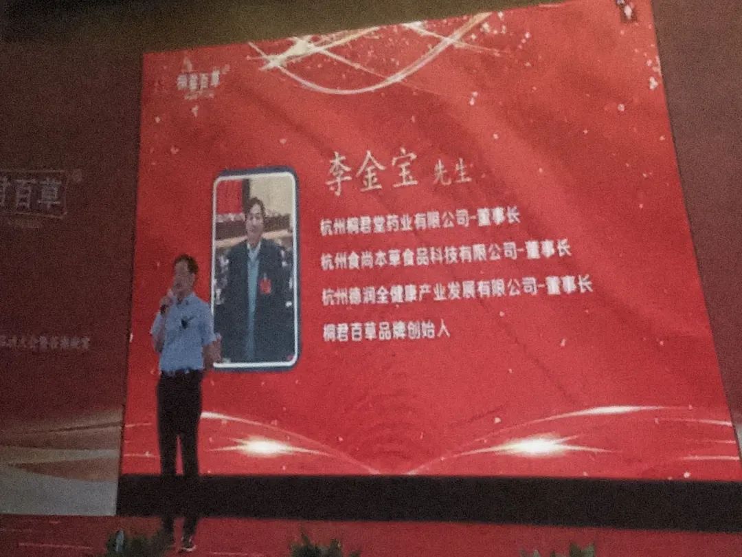 在桐庐,几乎人人都认识李金宝。杨洁说,那天李金宝背后的屏幕上展示了他“站台”的身份:桐君堂药业、食尚本草、德润全的董事长,以及桐君百草的品牌创始人。