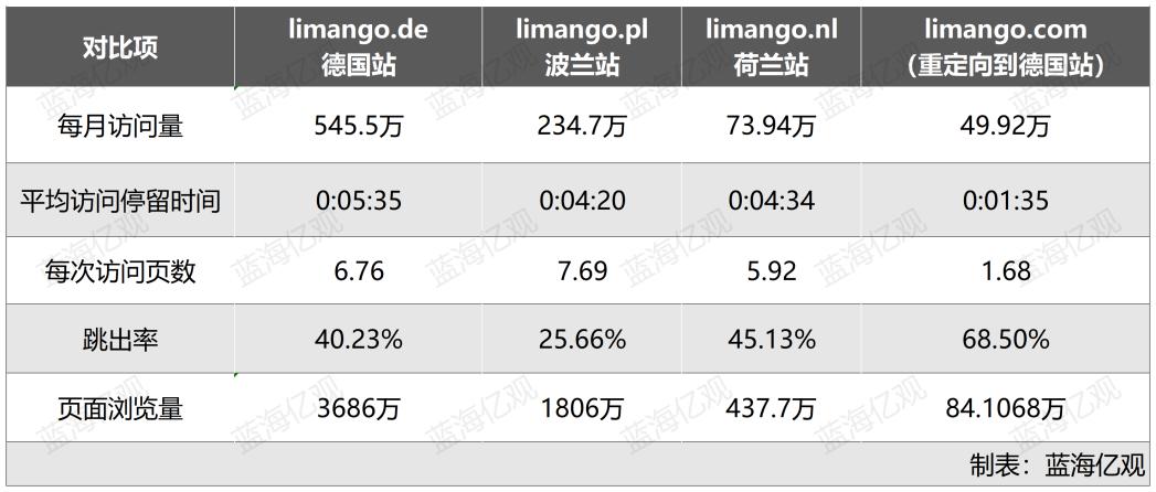 德国站是limango的大本营,也是其矩阵站点中流量最大的站点。