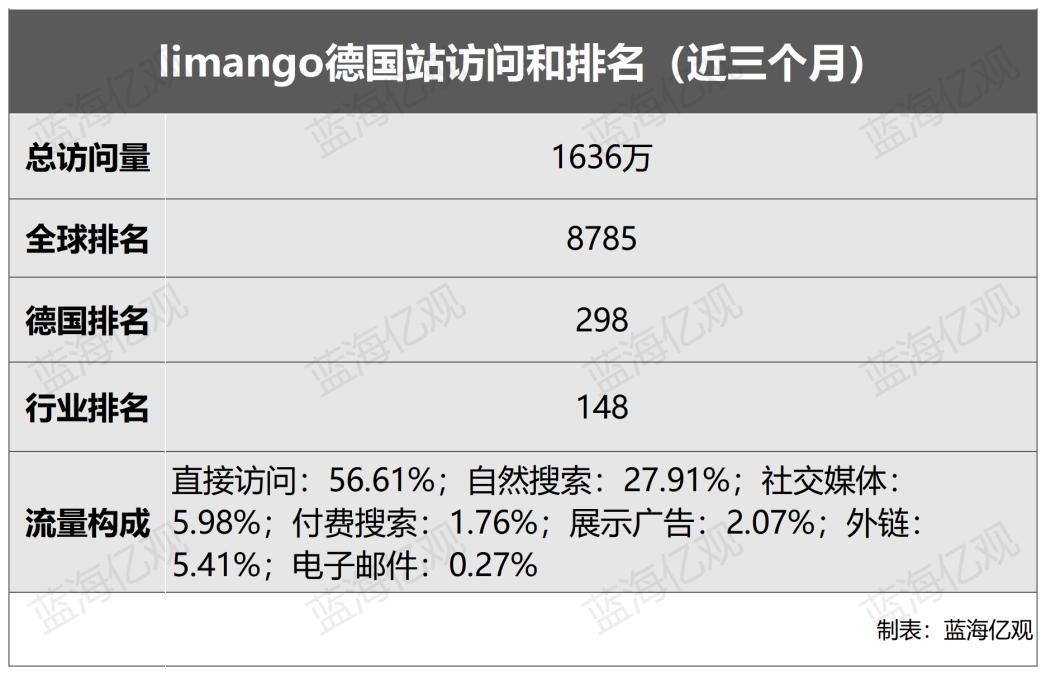 从一系列数据来看,limango在德国是一个处在中游水平的平台,如果在上面开店,其订单量无法与亚马逊德国站、亚马逊英国站相提并论。
