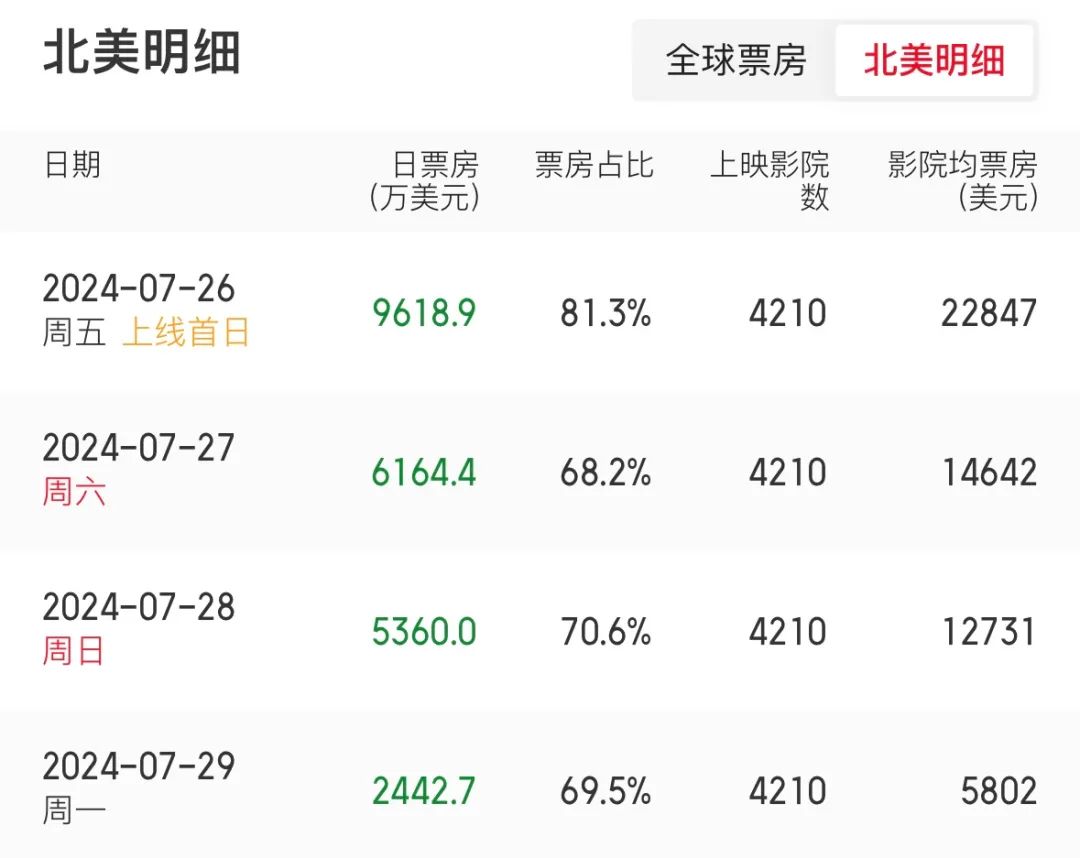 在北美,《死侍与金刚狼》首周末便突破2亿美元,勇创R级电影的历史开画新高,扭转“漫威电影宇宙”的低迷士气;与此同时,《死侍与金刚狼》全球横扫逾4亿美元,改写由《头脑特工队2》保持的年度纪录,让影市在下半年维持超高位运转。