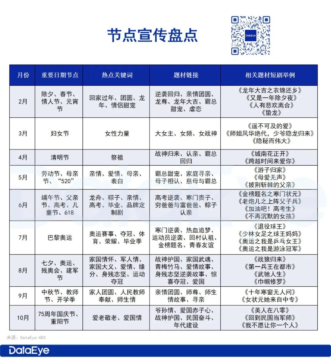 在短剧之前,电影和电视剧都已经吃到了节庆营销的红利。节假日更是电影片方的兵家必争之地。如今这股“节庆风”也是吹到了短剧圈。