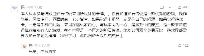 与《魔兽世界》的补偿方案相比,《炉石传说》一系列“送送送”的大手笔行为,显然赢得了大量玩家的心。在炉石传说和暴雪官方社交账号的评论区,许多玩家对补偿政策不吝溢美之词。