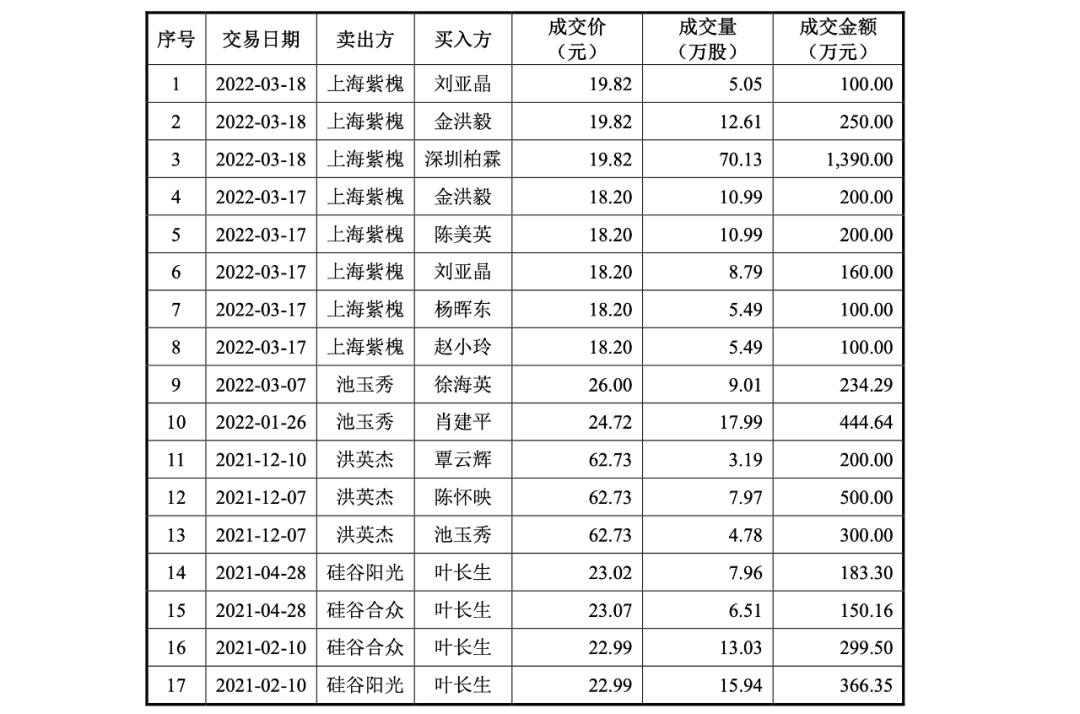 需要注意的是,挂牌期间,上海紫槐在两天内,分别以18.20元、19.82元的价格,多次转让鹰峰电子股票,套现共计2500万元。换言之,上海紫槐在鹰峰电子新三板挂牌期间就已收回全部成本,该机构持股比例降至约5.38%。