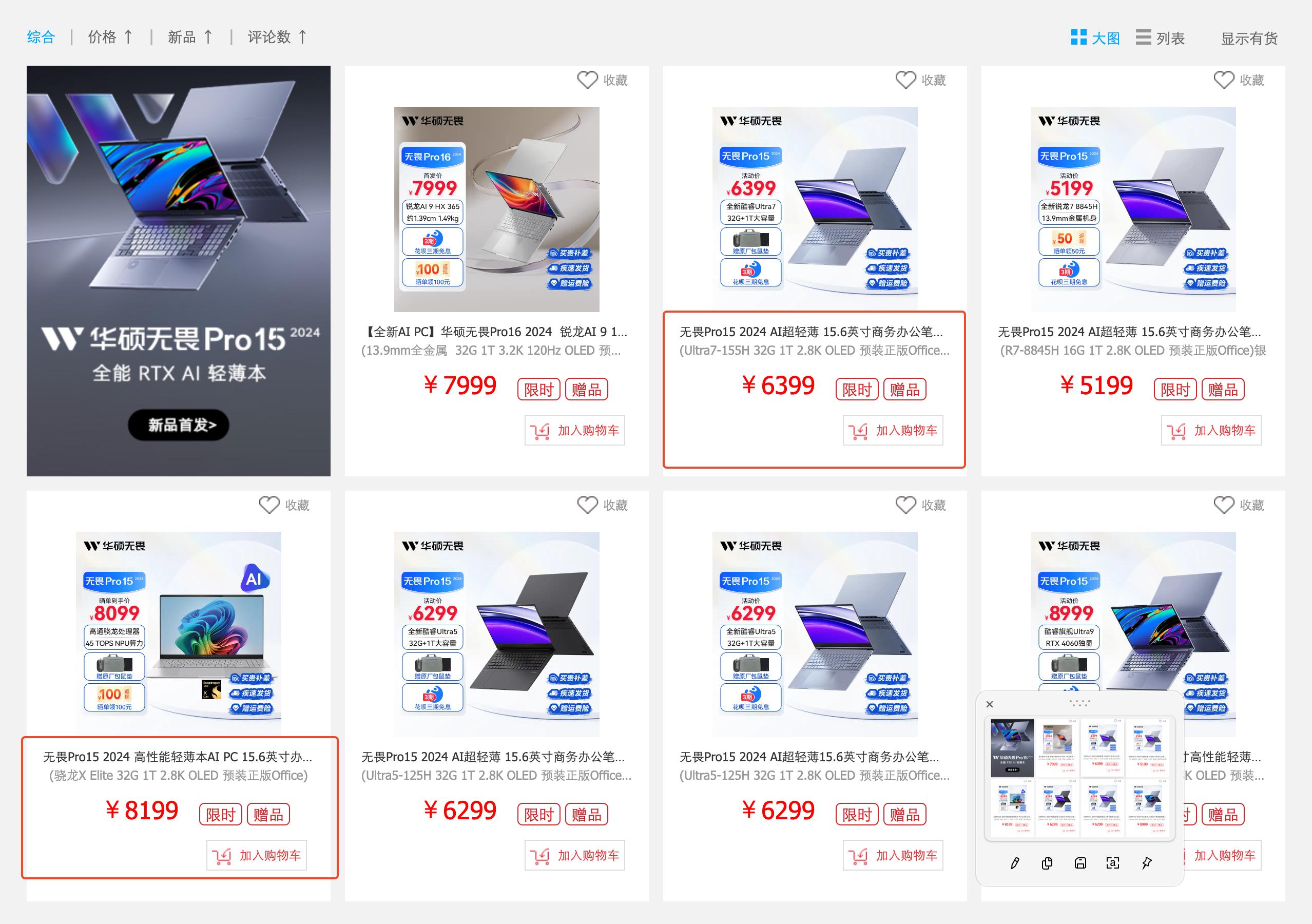 又比如华硕无畏 Pro15,同样是 32GB+1TB 的存储配置,骁龙 X Elite 版本的售价甚至可以比酷睿 Ultra 7 版本贵上 1800 元,提高到了 8199 元。