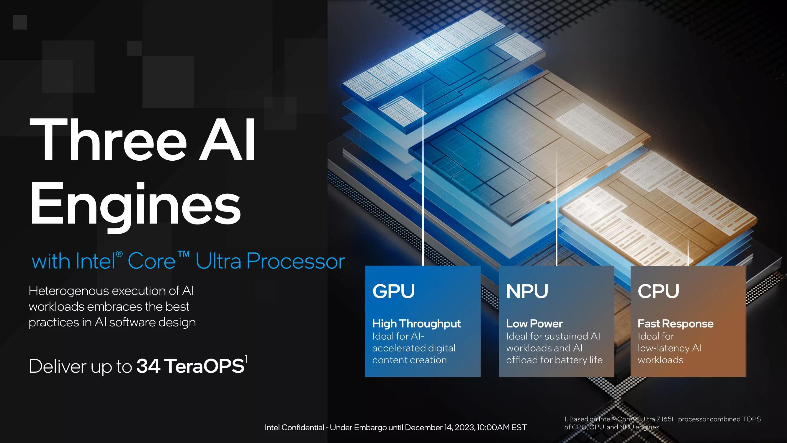 英特尔 Lunar Lake 目前还没有明确的上市时间表,但也集成了一块算力可达 48 TOPS 的 NPU。