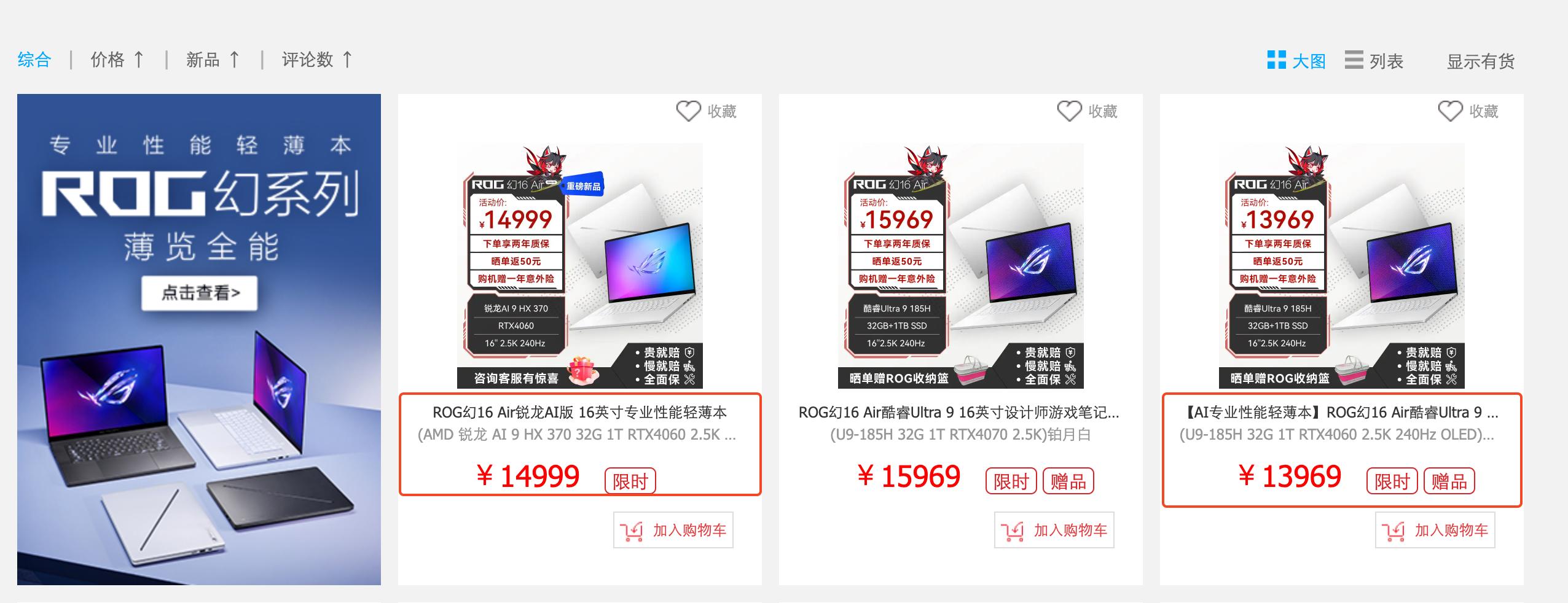 ROG 幻 16 Air 锐龙 AI 版(9 HX 370,RTX4060,32GB+1TB)的价格,更是比酷睿 Ultra 版(9 185H,RTX4060,32GB+1TB)更贵了 1000 元,高达 14999 元。