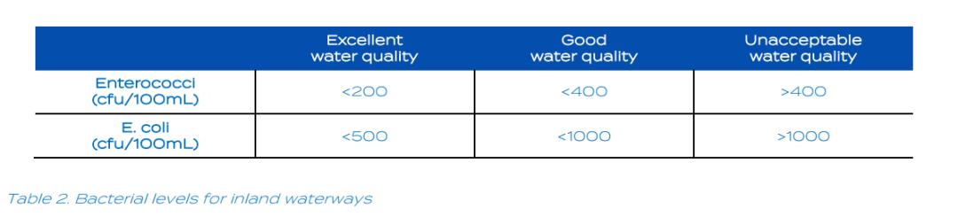 世界游泳联合会的《开放水域游泳手册》指出,“这两种细菌是监测粪便污染的可靠指标”。
