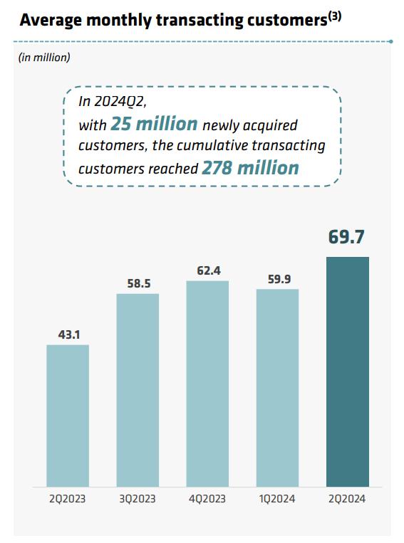 用户方面,二季度瑞幸平均每月交易客户达到 6970 万,同样创历史新高,较 2023 年同期的 4310 万增长 2780 万,同比增长 62% 。