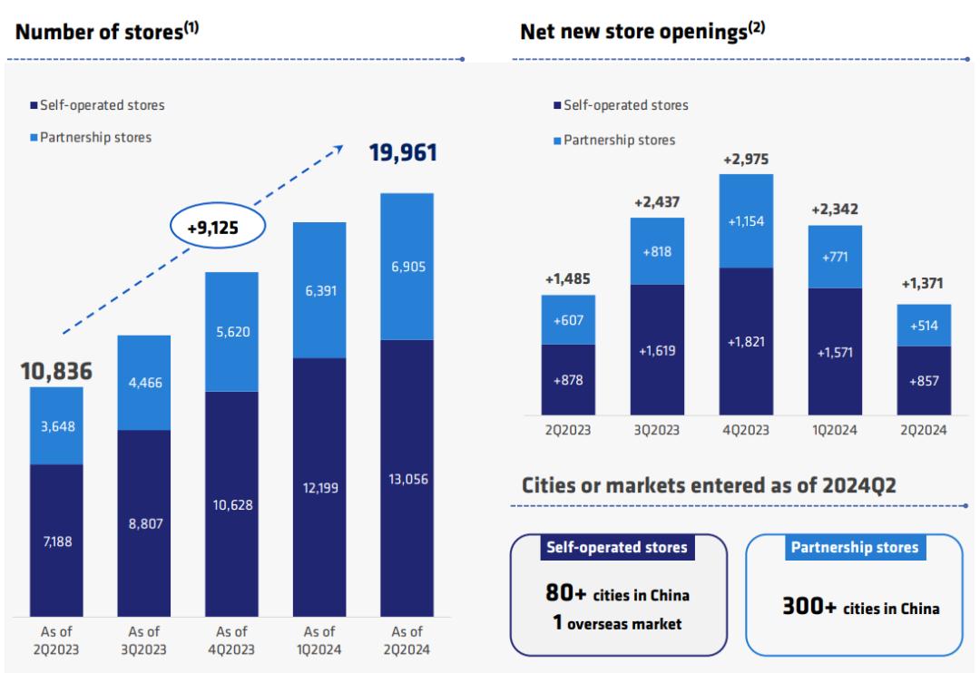 本季度瑞幸净新开门店( 新开-关停 )1371家,环比增长 7.4%,同比 2023 年二季度则增长了 84% 。
