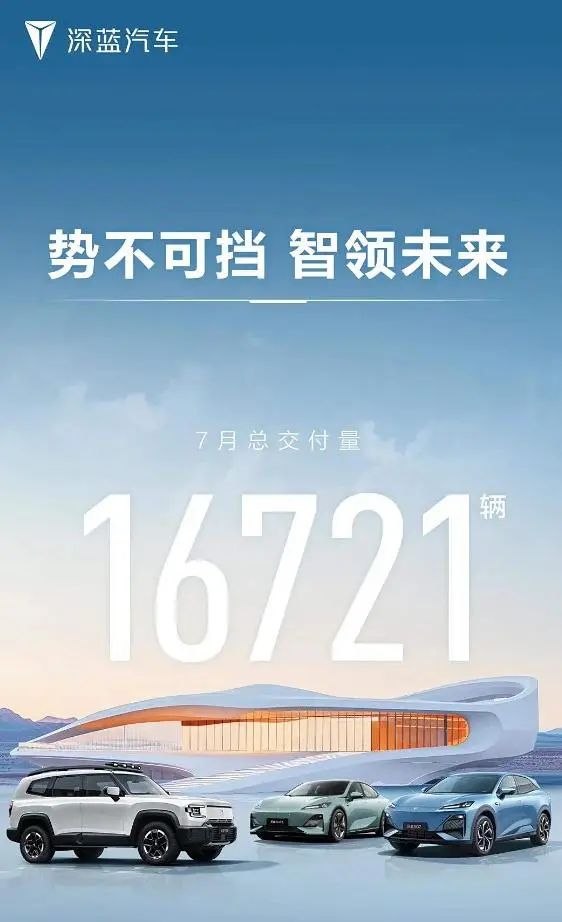 日前,深蓝汽车官方宣布,7月累计共交付16721辆,同时深蓝S07也迎来上市,该车共推出10款车型,售价区间为14.99-21.29万元。
