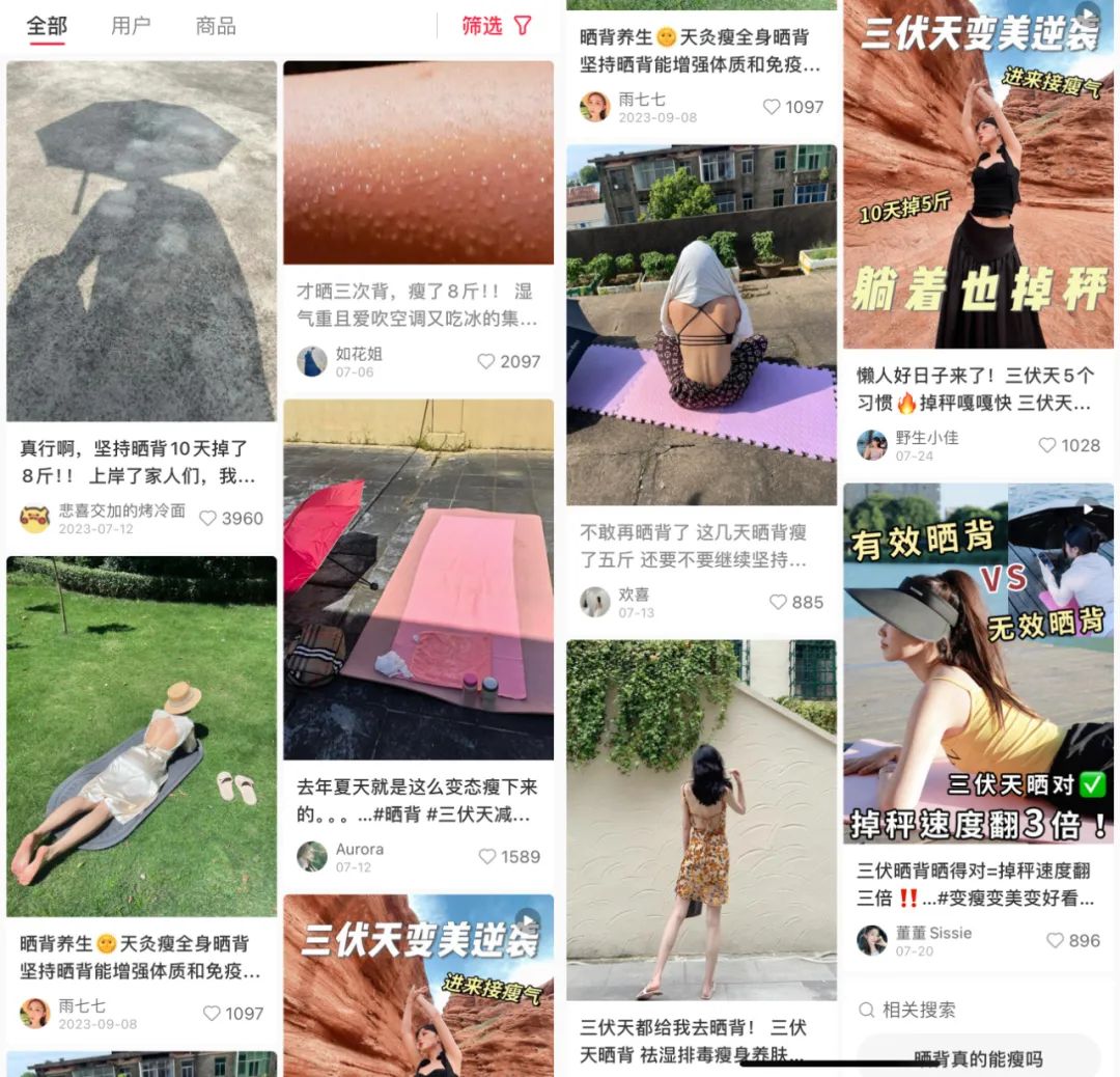 小红书上有帖子称自己靠晒背减肥,“三次瘦8斤”“一个月瘦20斤”,从近半个月的趋势看,这种晒背速瘦的帖子正变得越来越多,贾玲被这些人抓去晒背都能再瘦个十斤。