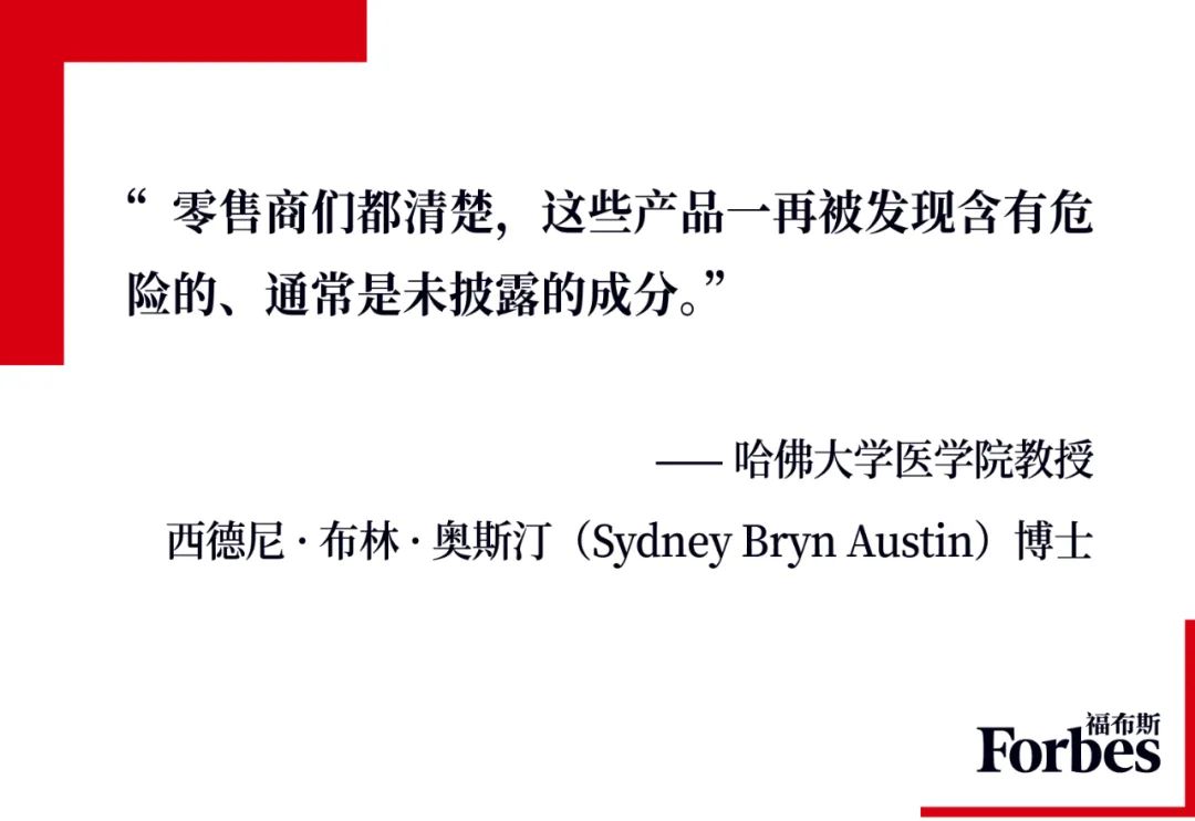 研究减肥药销售的哈佛医学院教授西德尼·布林·奥斯汀博士(Sydney Bryn Austin)在接受《福布斯》采访时表示,造假者们之所以还能通过eBay等渠道卖出减肥药,是因为他们每每总能得逞。美国联邦政府执法力度不强,没办法在线上平台阻止这些非法行径。奥斯汀表示:“零售商们都清楚,这些产品一再被发现含有危险的、通常是未披露的成分,并在销售的过程中使用虚假宣传,误导消费者相信这些产品是安全有效的,但事实并非如此。”
