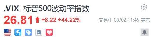 8 月,美股连续第二天大幅回调。衰退警报引发市场恐慌跑盘,美股大幅低开,盘中迅速下挫。标普 500 收跌1.84%,道指跌 1.51%,纳指跌 2.43%,小盘股跌 3.52%,恐慌指数VIX大涨 26.04%,正反映了昨晚的大幅波动。