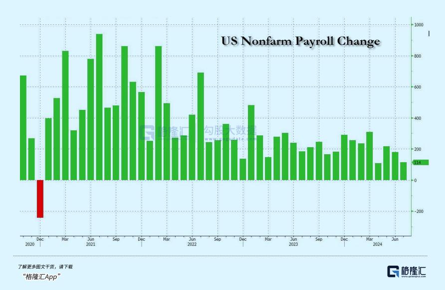 美国7月非农就业人口增长11.4万人,为2020年12月以来最低纪录,远不及预期的17.5万人,较前值20.6万人(下修至17.9万)大幅下降;并且失业率升至 4.3%,触发了准确率高达 100% 的衰退指标。