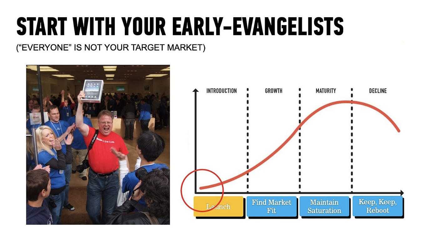 目标是找到一小群早期采用者客户——那些会向朋友推荐你的产品的人。寻找最有利可图的客户群,从那里开始。