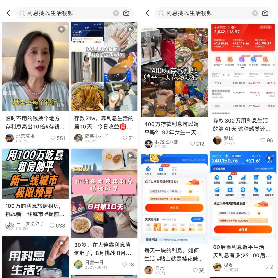 最近,各大社交平台开始流行起利息生活挑战,他们有的小有积蓄的在校大学生,有的是余额几万元的裸辞打工人,还有的是存款几十万甚至百万的资深职场人。