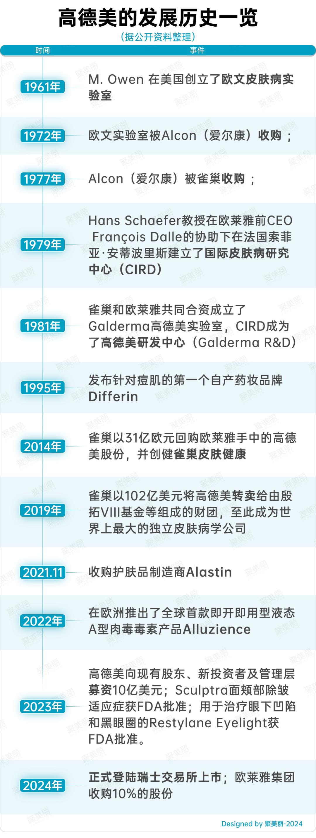 值得关注的是,2019年高德美才开始独立运营,并于彼时加注了护肤品和医美赛道。而2024年3月,在瑞士证券交易所正式敲钟上市。