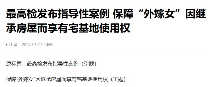 要知道,已经是2024年了,最高检还在重申“外嫁女”的宅基地继承权。