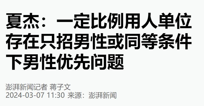 全国妇联副主席夏杰曾公开承认,就业市场上存在性别筛选现象