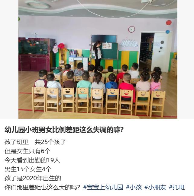 吓得网友赶紧发帖询问,“幼儿园小班男女比例差距这么失调的吗?”