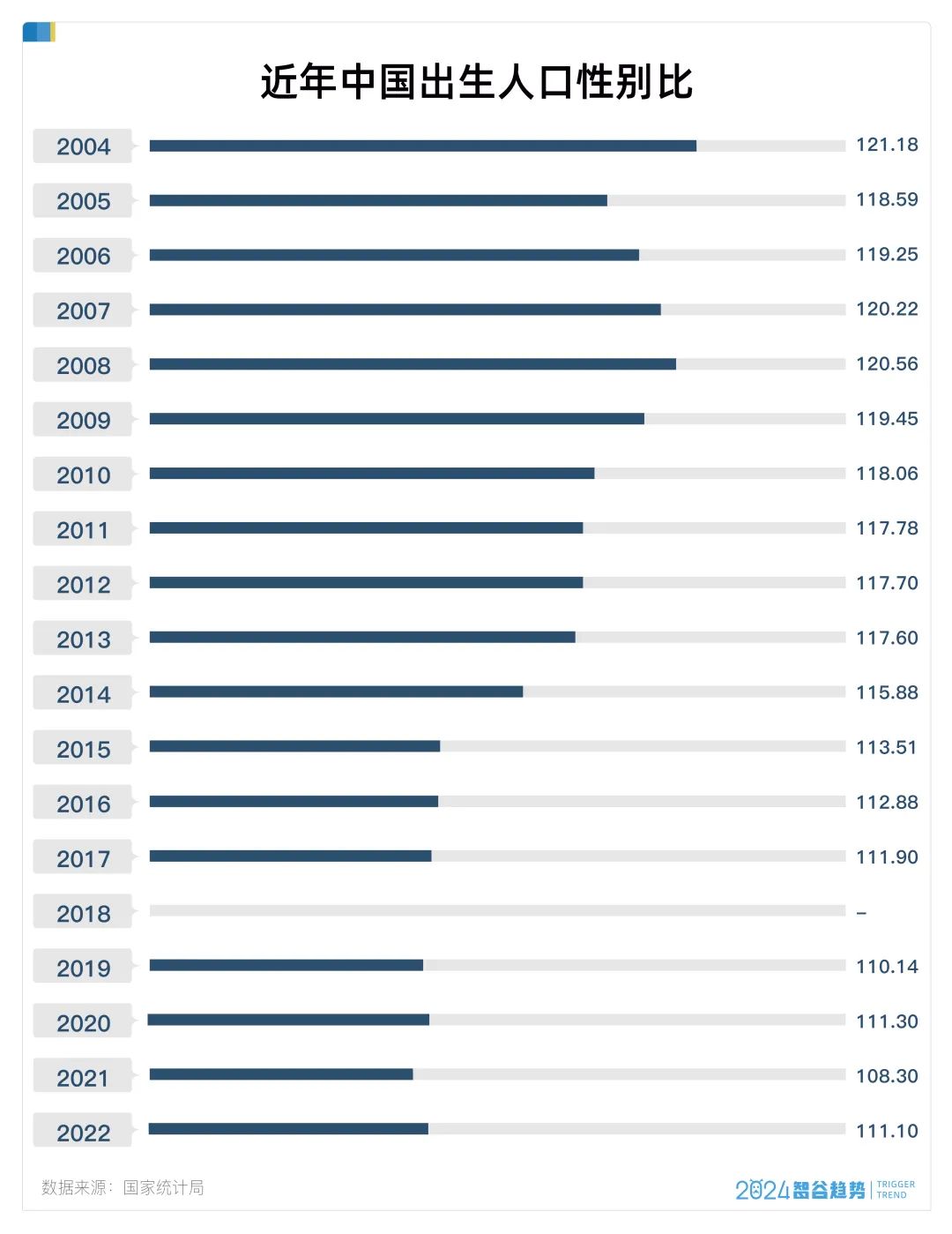 数据显示,这几年的出生人口性别比,还在逆势抬头,始终无法降至107以内的正常范围。