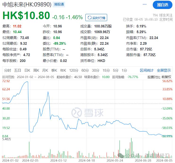 今年来,贪玩游戏母公司中旭未来股价出现了超过70%的惊人跌幅,市值缩水至不足60亿,与市值高峰相比,蒸发了超过六成。