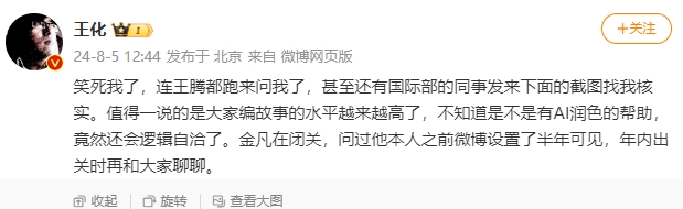 在辟谣的同时王化还表示谣言编得太真,以至于王腾(Redmi负责人)和小米国际部都有人前来询问情况,可见影响之大。