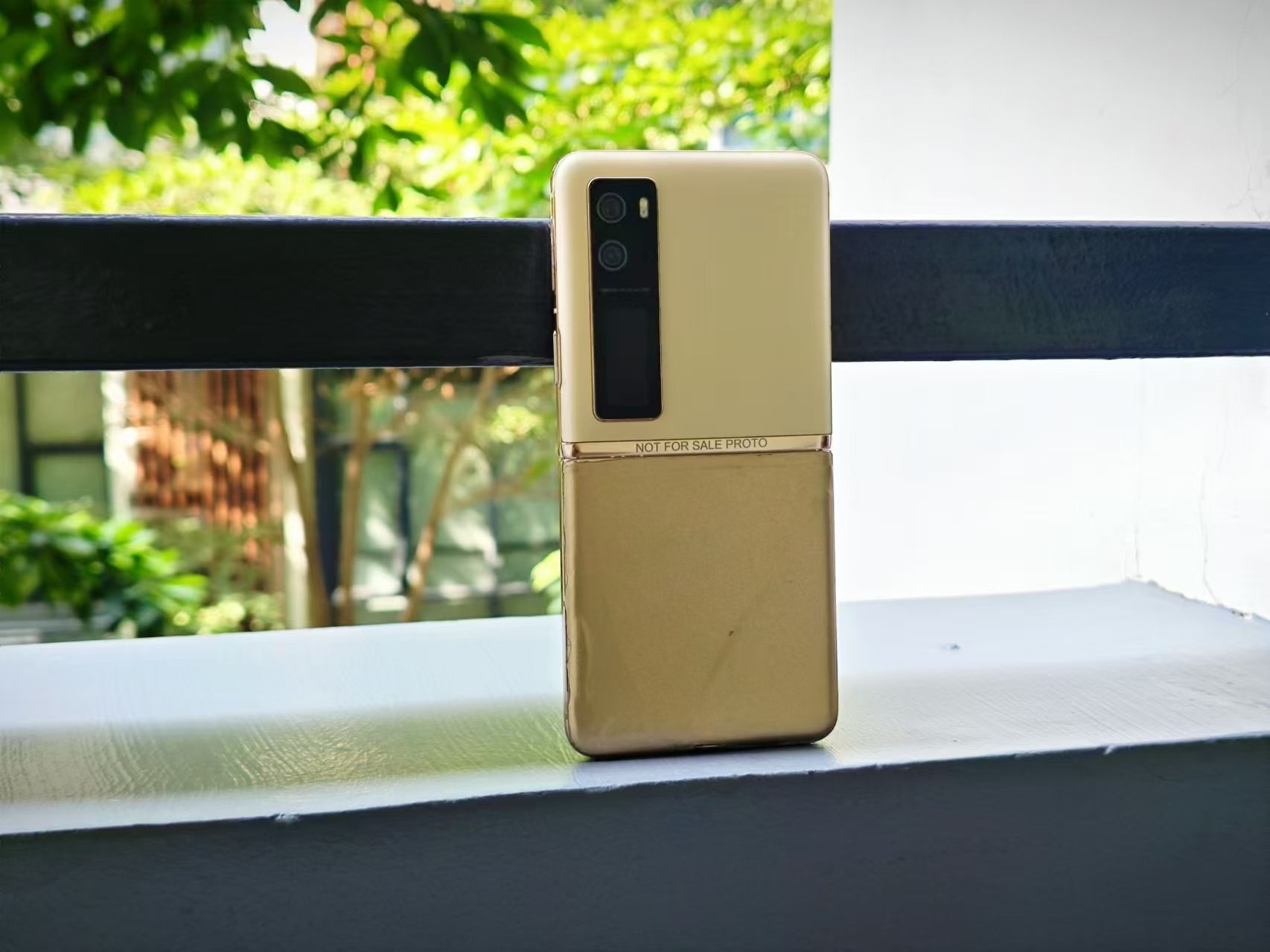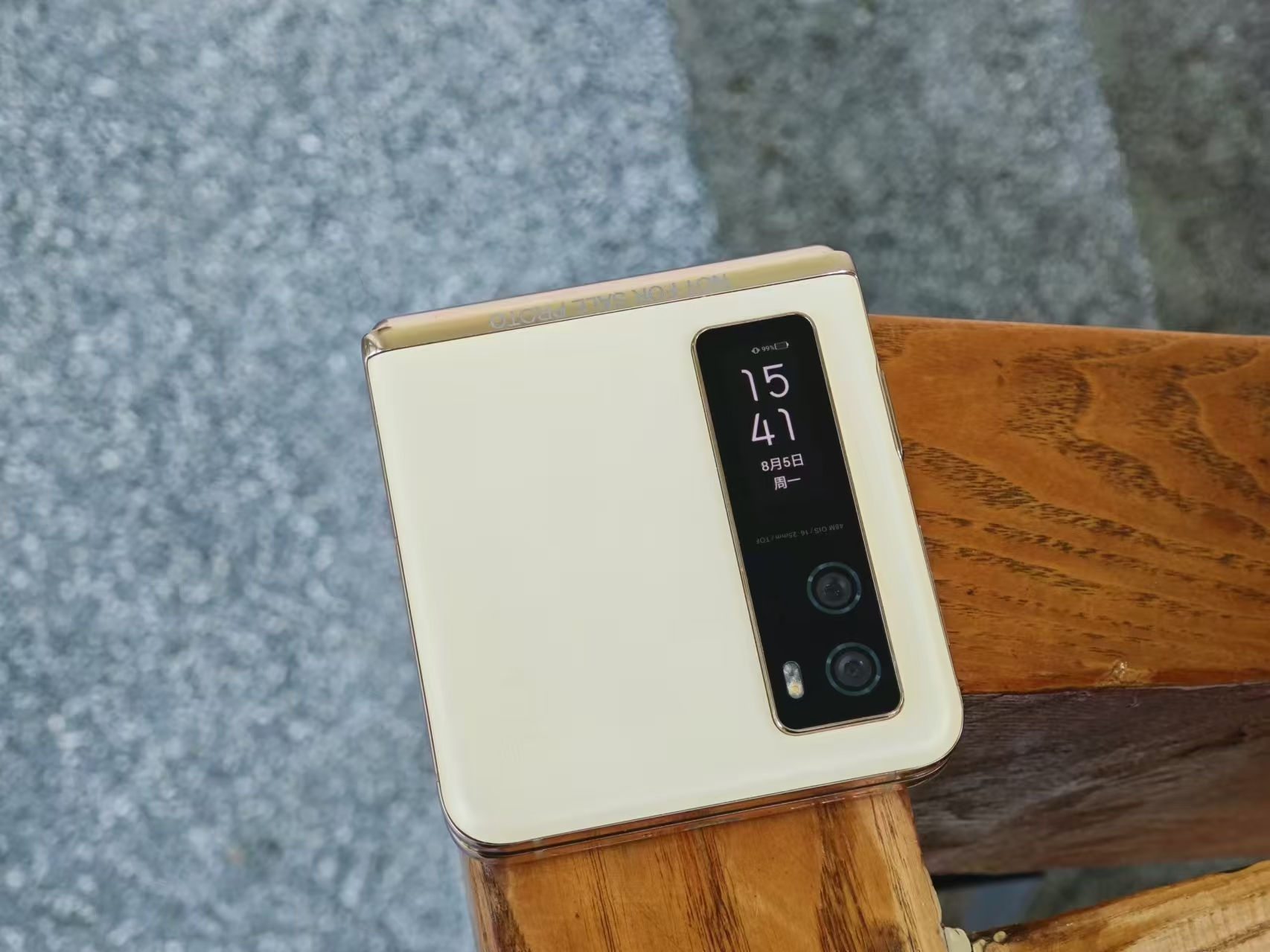 至于副屏嘛,和后置双摄放在了同一个长条形模组上,在暗金色的镶边点缀下,至少在没点亮时看着还挺不错的,当然比起现在华米OV这些大厂出的竖折产品明显是要逊色几分。