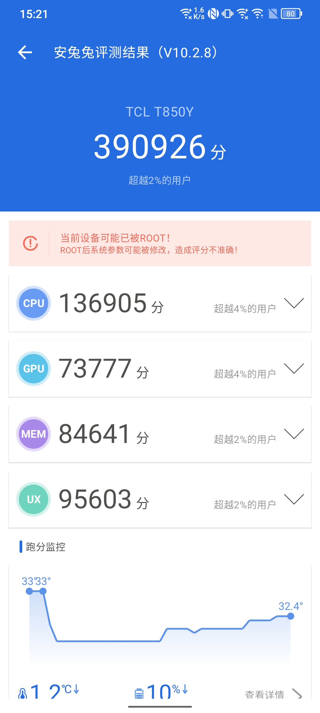 总之先拿娱乐兔测一下,最终综合得分39万,比一般的骁龙765G手机还要略低,但是成功超越了2%的用户。