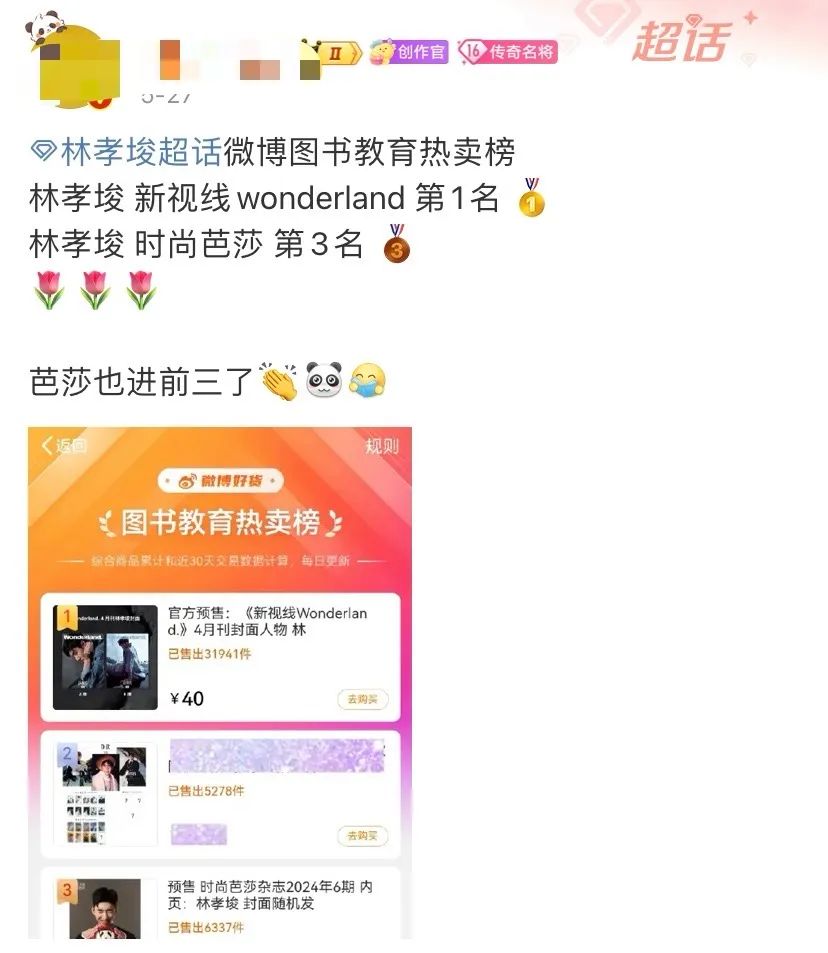 林孝埈登上时尚芭莎六月刊后,不断有粉丝更新销量表现。在很多粉丝眼中,一本杂志,不仅是粉丝心意的体现,还成为运动员博得时尚资源的敲门砖,“数据好了,后续自然会有更多时尚资源找上门”。伊利在巴黎周期签下孙颖莎、王楚钦后,莎头CP粉也大受鼓舞,集体“冲销量”庆祝。