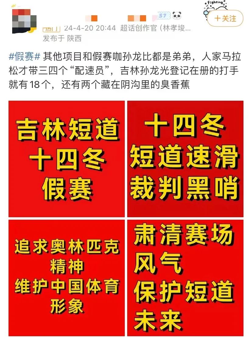 赛后,林孝埈粉丝喊出“吉林队打假赛”的口号,认为吉林队抱团围堵林孝埈,导致林孝埈不能起速。粉丝带着怨气一齐涌入孙龙以及吉林队各运动员、教练员的社交账号评论区,进行大肆辱骂。