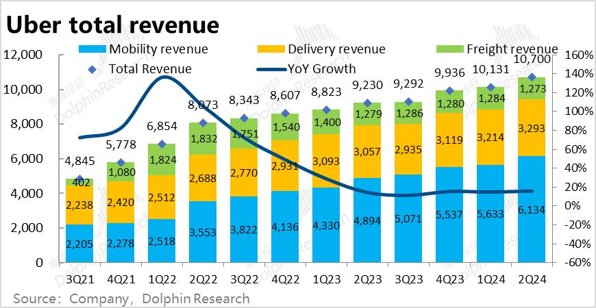 至于Uber货运业务,本季度营收约12.7亿元,环比继续略为萎缩。虽略好于预期,但对公司的总体业绩和估值几无影响。
