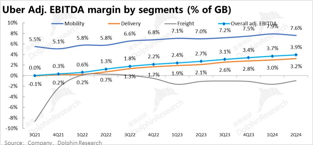 1)打车业务的adj.EBITDA为15.7亿美元,比预期高近0.3亿,但占订单金额的利润率是环比下降了0.3pct的。