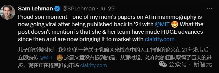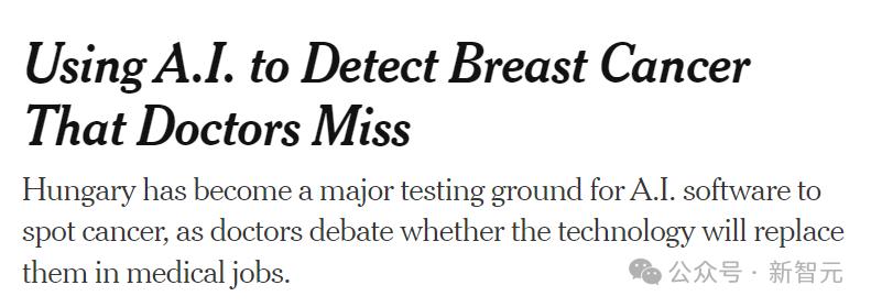 除此之外,此前《纽约时报》有过一则「AI检测出了医生遗漏的乳腺癌」的相关报道。