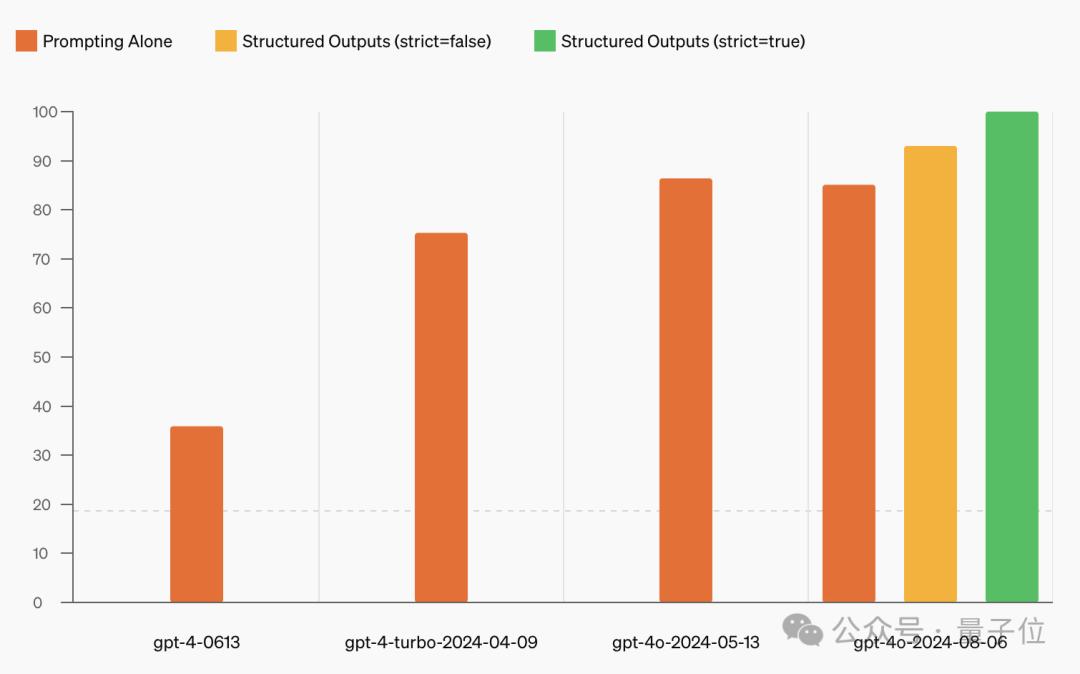 最新版模型“GPT-4o-2024-08-06”在JSON模式评估中,得分100%。