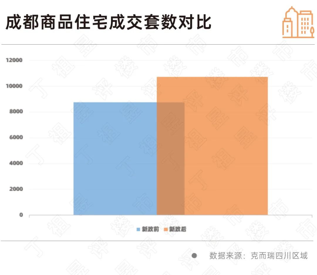 具体到项目成交来看,新政后成都商品住宅成交量出现明显上涨,涨幅约为22.67%。