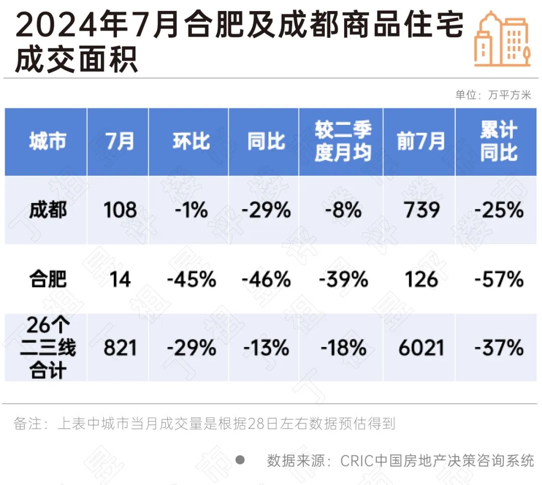 但进入2024年,合肥新房市场加速降温。截至2024年7月,合肥商品住宅成交面积约126万平方米,累计同比下降57%,明显高于二三线重点城市平均37%的降幅。