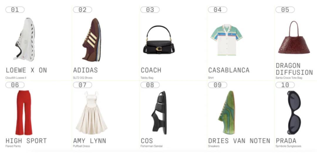 而Loewe不仅打破了Prada和Miu Miu在品牌榜里的垄断,它和昂跑的联名运动鞋“Cloudtilt Loewe II”也超过阿迪达斯力推的复古球鞋SL72 OG,成为了当季最受欢迎的时尚单品。