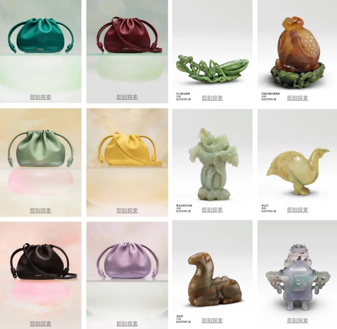 当别家品牌的“中国限定”还在和中国红、中国结、龙、大熊猫做强绑定的时候,它选择借鉴“中国玉”,从故宫的六件玉雕珍品中找灵感,设计了配色更加“温润如玉”的包。