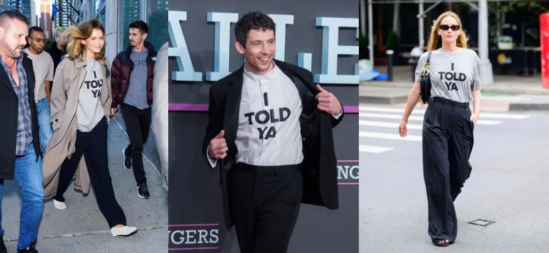 不仅如此,Loewe的创意总监Jonathan Anderson还担纲电影《挑战者》的服装造型,设计了一款胸口印有“I TOLD YA(我告诉过你)”的T恤,并多次被明星Zendaya、Josh O’Connor 和 Jennifer Lawrence穿在身上。Loewe随后上线了这款T恤并迅速售罄,其在Lyst上的搜索量也因此在第二季度增长了29%。