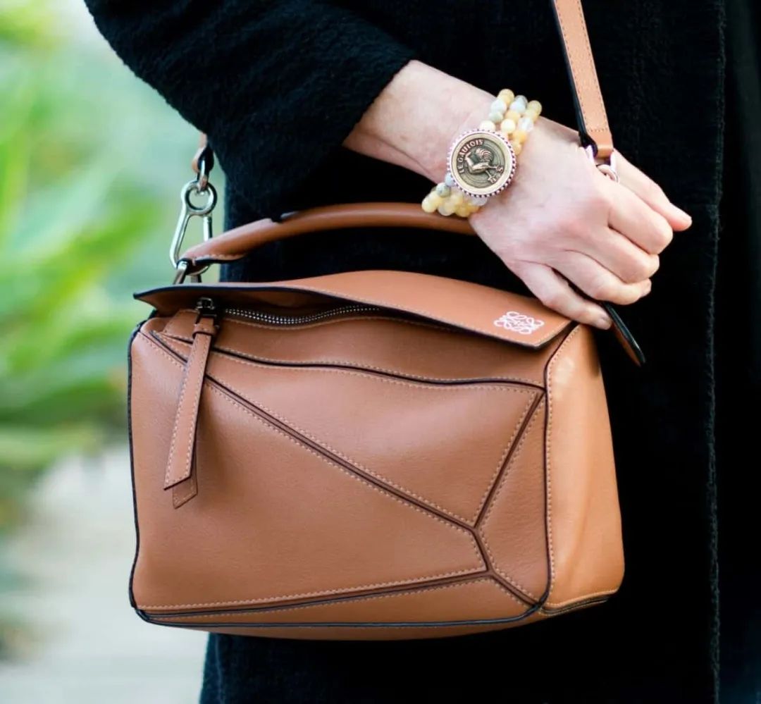 2014年,它一改传统沉闷的形象推出Puzzle包。这款包从外观看像是用不同形状的七巧板拼接而成,既延续了品牌极简的风格,又极具辨识度。直到今天,Puzzle仍然是Loewe数一数二的爆款。在中国,由于外型好看、皮质柔软、轻便能装,它还被部分想保持低调的打工人封为“战袍包”。