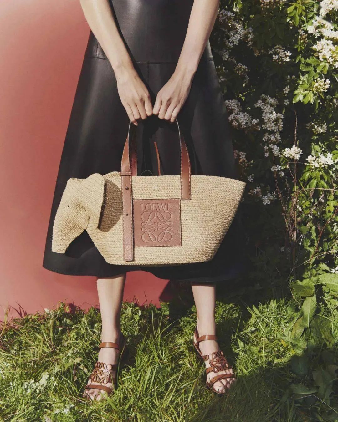 此后Loewe的爆款产品就没断过,包括像给包盖打了丝带结的马鞍包、造型可爱的小象包,以及像是随意给丝绸香囊打了个结的Flamenco福袋包。其中它在2019年推出的草编篮子包因为度假松弛感浓、超能装,成为每年夏天的热卖款式,还被时尚媒体评为“最经得起时间考验的包”“转售价格最高的包”之一。